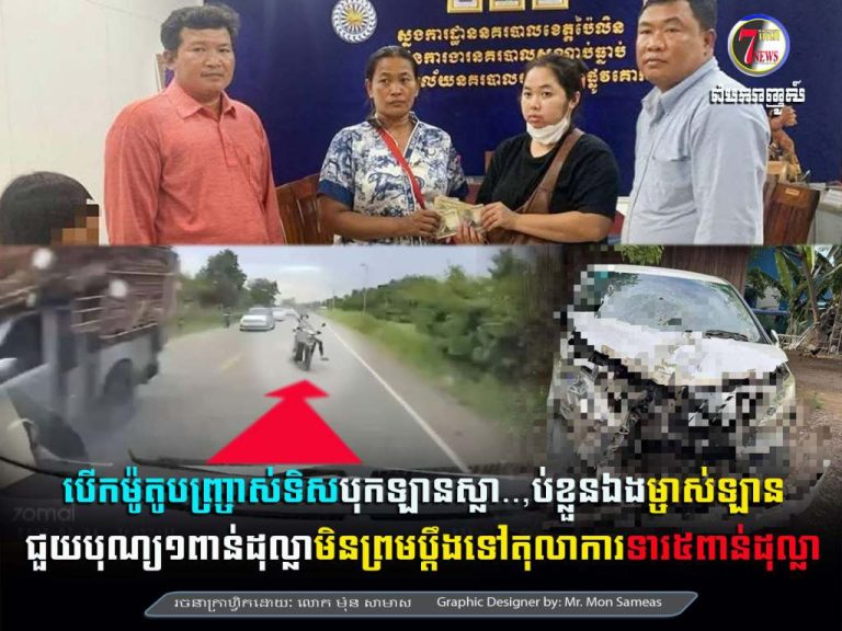 ខេត្តប៉ៃលិន៖ ស្នងការខេត្តប៉ៃលិន បំភ្លឺករណី បុរសម្នាក់បើកម៉ូតូបញ្ច្រាស់ទិសបុករថយន្ត បណ្ដាលឲ្យស្លា..,ប់ខ្លួនឯង រីឯគ្រួសារសព បានប្តឹងម្ចាស់រថយន្តទៅតុលាការខណៈខាងសពទារសំណង៥០០០$(ប្រាំពាន់ដុល្លា)ហើយខាងម្ចាស់រថយន្តជួយត្រឹម១០០០$(មួយពាន់ដុល្លារ)! សេចក្តីបំភ្លឺព័ត៌មានរបស់ស្នងការដ្ឋាននគរបាល ខេត្តប៉ៃលិន៖ ក្រោយពីបានទទួលព័ត៌មាន ពីបណ្ដាញសង្គមហ្វេសប៊ុកមួយចំនួន ស្នងការដ្ឋាននគរបាល ខេត្តប៉ៃលិន មានកិត្តិយសសូមបំភ្លឺជូនសាធារណជន ព្រមទាំងអ្នកនិយមលេងបណ្តាញសង្គម មេត្តាជ្រាបថា កាលពីវេលាម៉ោង ១៧ និង ១៣នាទី...