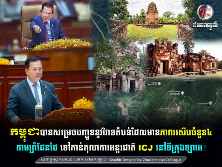 រាជធានីភ្នំពេញ៖ រាជរដ្ឋាភិបាលកម្ពុជាបានបញ្ជាក់ជាថ្មី នៅក្នុងសេចក្តីថ្លែងការនាថ្ងៃទី៤ ខែមិថុនា ឆ្នាំ២០២៥នេះថា កម្ពុជានឹងយកបញ្ហាប្រាសាទតាមាន់ធំ, ប្រាសាទតាមាន់តូច, ប្រាសាទតាក្របី និង តំបន់មុំបី ទៅឲ្យតុលាការយុត្តិធម៌អន្តរជាតិ (ICJ) ដើម្បីឱ្យតុលាការយុត្តិធម៌អន្តរជាតិមួយនេះកាត់សេចក្ដីឱ្យ។ ហើយប្រជាពលរដ្ឋកម្ពុជាទូទាំងនគរបានផ្តល់បេះដូង ផ្តល់ការគាំទ្រយ៉ាងពេញទំហឹង និងយ៉ាងក្លៀវក្លាបំផុតចំពោះរដ្ឋាភិបាលលើបញ្ហានេះ ព្រោះដើម្បីកុំឱ្យបន្តឈឺក្បាលតទៅទៀត។ ដូចដែលសម្តេចអគ្គមហាសេនាបតីតេជោ ហ៊ុន សែន...