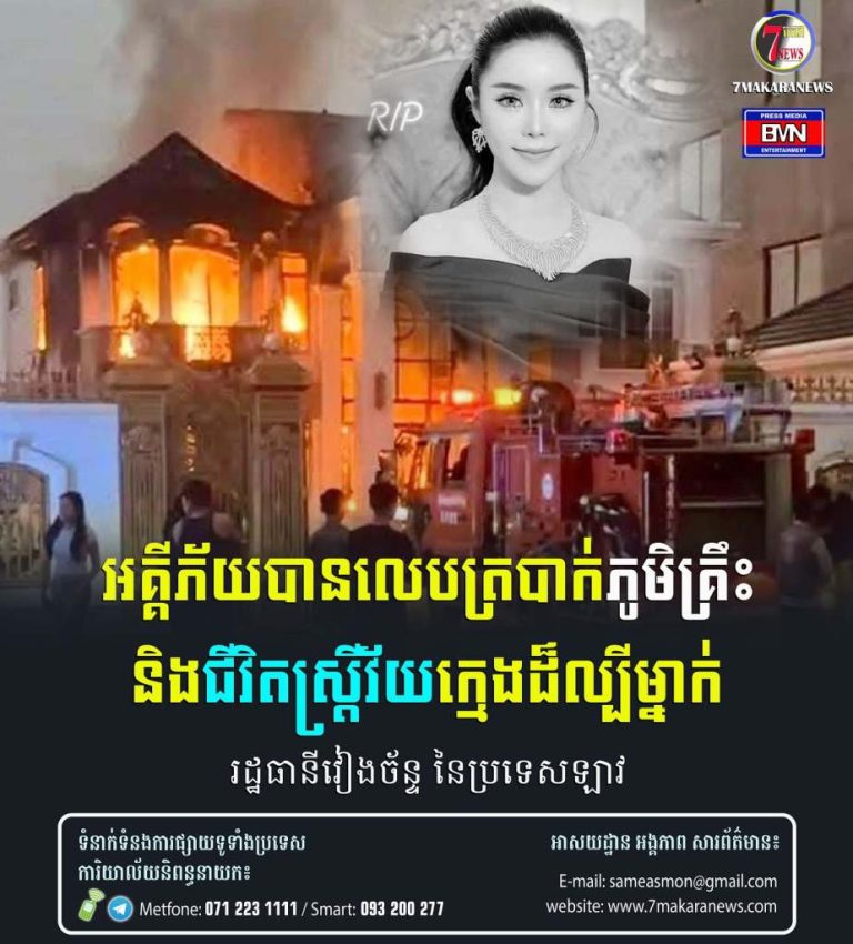 ប្រទេសឡាវ៖ តាមប្រភពអ្នកប្រើប្រាស់បណ្តាញសង្គមនៅក្នុងប្រទេសឡាវ បាននាំគ្នាផ្ញើសារចូលរួមរំលែកមរណៈទុកទៅដល់ Idol របស់ពួកគេ គឺ អ្នកនាង វីឡៃ ខាំ ម្ចាស់ប្រេនផលិតផលអនឡាញ(Online)ល្បី និងម្ចាស់ហាងថែរក្សាសម្ផស្សដ៏ល្បីឈ្មោះ ប្រចាំប្រទេសឡាវ ដែលបានអស់ជីវិត យ៉ាងអណោចអធម នៅក្នុងសោកនាដកម្មអគ្គីភ័យឆេះផ្ទះវីឡា កាលពីវេលាទៀបភ្លឺ នាថ្ងៃទី២៥ ខែកុម្ភៈ ឆ្នាំ២០២៥។ យោងតាមរបាយការណ៍ផ្លូវការរបស់នាយកដ្ឋាននគរបាលបង្ការ...