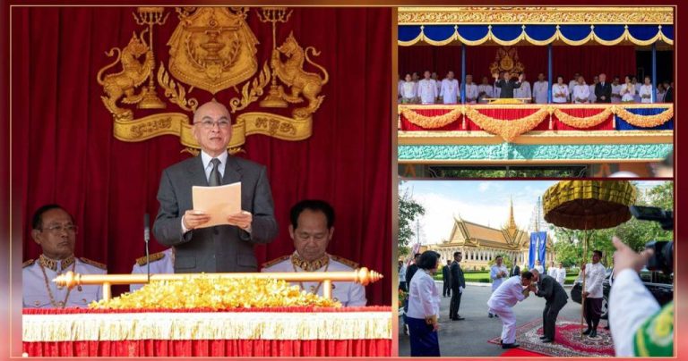 ប្រមុខថ្នាក់ដឹកនាំ អញ្ជេីញចូលរួមដង្ហែ ព្រះករុណាព្រះបាទសម្តេចព្រះបរមនាថ នរោត្តម សីហមុនី ព្រះមហាក្សត្រ នៃព្រះរាជាណាចក្រកម្ពុជា ក្នុងព្រះរាជពិធីមហាមិទ្ទិញ នៅមុខព្រះបរមរាជវាំង ក្នុងឱកាសនៃព្រះរាជពិធីខួបលើកទី២០ នៃការគ្រងព្រះបរមសិរីរាជសម្បត្តិ។