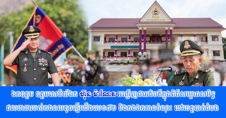 ឯកឧត្តម ឧត្តមសេនីយ៍ឯក ហ៊ុន ម៉ាណែត អញ្ជើញជាអធិបតីក្នុងពិធីសមោ្ពធសមិទ្ធផលនានារបស់កងពលតូចថ្មើរជើងលេខ៥២ និងកងឯកភាពចំណុះ នៅខេត្តបាត់ដំបង ចេញផ្សាយ ថ្ងៃទី ១៤ ខែ មីនា ឆ្នាំ ២០២៣ ឯកឧត្តម ឧត្តមសេនីយ៍ឯក ហ៊ុន ម៉ាណែត អគ្គមេបញ្ជាការរង នៃកងយោធពលខេមរភូមិន្ទ...