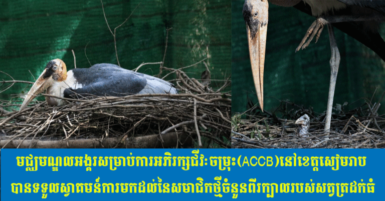 ចេញផ្សាយថ្ងៃអង្គារ៍ ៣កើត ខែមាឃ ឆ្នាំខាល ចត្វាស័ក ព.ស ២៥៦៦, ត្រូវនឹងថ្ងៃទី២៤ ខែមករា ឆ្នាំ២០២៣ មជ្ឈមណ្ឌលអង្គរសម្រាប់ការអភិរក្សជីវៈចម្រុះ(ACCB)នៅខេត្តសៀមរាប បានទទួលស្វាគមន៍ការមកដល់នៃសមាជិកថ្មីចំនួនពីរក្បាលរបស់សត្វត្រដក់ធំ។ កណ្តាល៖ថ្ងៃទី ២៣ ខែ មករា ឆ្នាំ ២០២៣ មជ្ឈមណ្ឌលអង្គរសម្រាប់ការអភិរក្សជីវៈចម្រុះ (ACCB)...