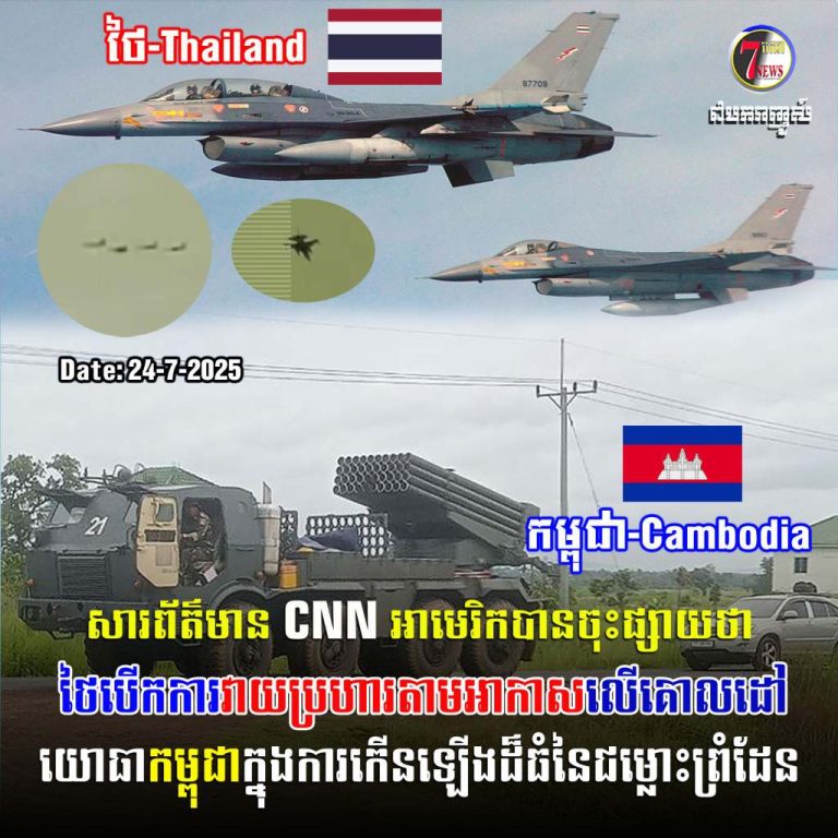 តាមសេចក្តីរាយការណ៍ពីសារព័ត៌មានCNNនៅថ្ងៃព្រហស្បតិ៍ ទី២៤ ខែកក្កដា ឆ្នាំ២០២៥ ប្រទេសថៃ៖ បានបើកការវាយប្រហារតាមផ្លូវអាកាសប្រឆាំងនឹងគោលដៅយោធាកម្ពុជានៅតាមព្រំដែនដែលមានជម្លោះដ៏យូររបស់ពួកគេ ដោយបង្កើនភាពតានតឹងរវាងប្រទេសជិតខាងអាស៊ីអាគ្នេយ៍។ កម្ពុជាបាននិយាយថា ខ្លួននឹងឆ្លើយតបយ៉ាងម៉ឺងម៉ាត់។ ប៉ុន្មានម៉ោងមុននេះ កម្លាំងទាហានថៃ និងកម្ពុជា បានប៉ះទង្គិចគ្នានៅតំបន់ជាច្រើននៅតាមព្រំដែន ដោយបានសម្លាប់មនុស្សយ៉ាងតិច ៨នាក់នៅក្នុងប្រទេសថៃ។ ការវាយប្រហារបានកើតឡើងមួយថ្ងៃបន្ទាប់ពីទាហានថៃម្នាក់បានជាន់មីនបាត់បង់ជើងរបស់គេនៅតាមព្រំដែនកម្ពុជា-ថៃ ដែលជំរុញឱ្យមានការកម្រិតធ្លាក់ចុះទំនាក់ទំនងការទូតរវាងទាំងទីក្រុងបាងកក និងទីក្រុងភ្នំពេញ ខណៈដែលទំនាក់ទំនងបានធ្លាក់ចុះដល់កម្រិតទាបបំផុតក្នុងរយៈពេលជាច្រើនឆ្នាំ។