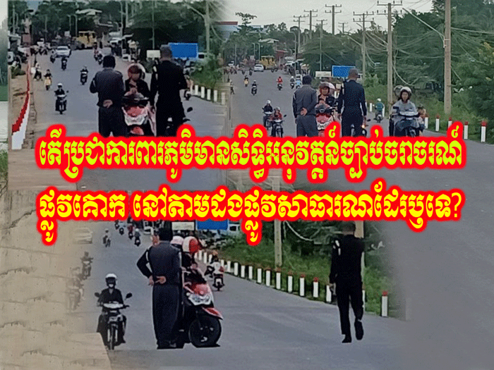 តើប្រជាការពារភូមិមានសិទ្ធិអនុវត្តន៍ច្បាប់ចរាចរណ៍ផ្លូវគោកនៅតាមដងផ្លូវសាធារណដែរឫទេ? មានវីដេអូ(Video) សូមចុចទីនេះដើមកបីទស្សនា=>(https://fb.watch/ela923xW-b/) ក្រុងស្វាយរៀង៖ ថ្ងៃទី១៧ ខែកក្កដា ឆ្នាំ២០២២ វេលាម៉ោង ៣:៣០នាទីរសៀល ហេតុការណ៍នេះកើតឡើងជារើយៗ នៅភូមិពោធិ៍តាហោ សង្កាត់ពោធិ៍តាហោ ក្រុងស្វាយរៀង ខេត្តស្វាយរៀង។ មានប្រជាពលរដ្ឋជាច្រើនៅតាមមូលដ្ឋានបានប្រាប់មកអ្នកសារព័ត៌មានថា គាត់មានអារម្មណ៍ភ័យខ្លាចពេលជួបប្រជាការពារភូមិ និងសួមកកាន់អ្នកសារព័ត៌មានថា៖ តើហេតុអីបានជាប្រជាការពារភូមិមានសិទ្ធិចុះចាប់ (មួក, កញ្ចក់......)...
