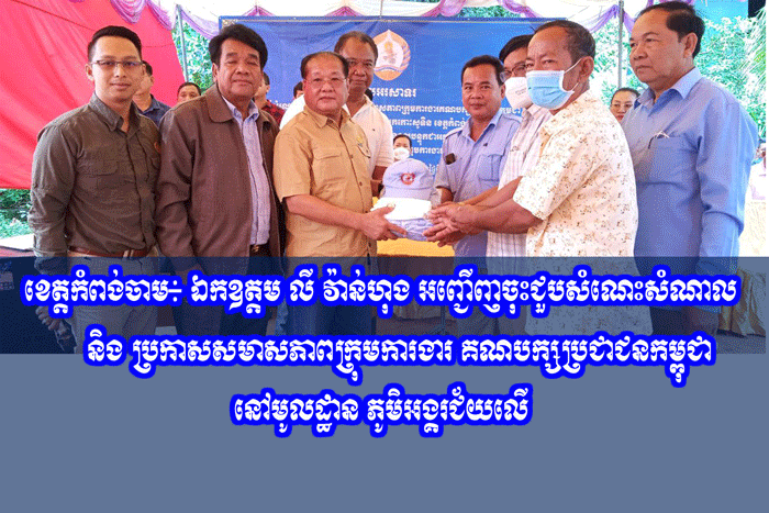 ចេញផ្សាយថ្ងៃអាទិត្យ ៨កើត ខែពិសាខ ឆ្នាំខាល ចត្វាស័ក ព.ស ២៥៦៦, ត្រូវនឹងថ្ងៃទី៨ ខែឧសភា ឆ្នាំ ២០២២ ខេត្តកំពង់ចាម៖ ឯកឧត្តម លី វ៉ាន់ហុង អញ្ជើញចុះជួបសំណេះសំណាល និង ប្រកាសសមាសភាពក្រុមការងារ គណបក្សប្រជាជនកម្ពុជា នៅមូលដ្ឋាន...