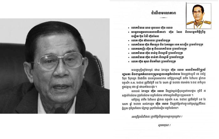 ចេញផ្សាយថ្ងៃសៅរ៍ ៧កើត ខែពិសាខ ឆ្នាំខាល ចត្វាស័ក ព.ស ២៥៦៦, ត្រូវនឹងថ្ងៃទី៧ ខែឧសភា ឆ្នាំ ២០២២ សារលិខិតចូលរួមរំលែកទុក្ខ លោកជំទាវ លាង វួចឆេង ហ៊ុន ណេង ព្រមទាំងក្រុមគ្រួសារនៃសព ខ្ញុំបាទ ម៉ុន...
