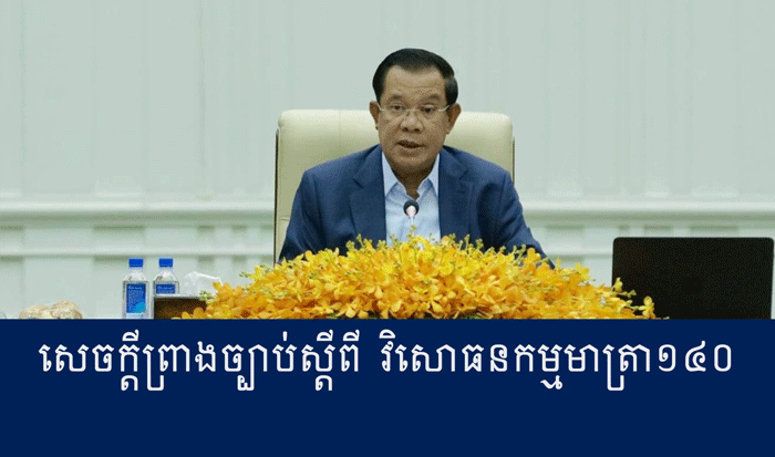 ចេញផ្សាយថ្ងៃសុក្រ ១៥រោច ខែផល្គុន ឆ្នាំឆ្លូវ ត្រីស័ក ព.ស ២៥៦៥, ត្រូវនឹងថ្ងៃទី ១ ខែមេសា ឆ្នាំ ២០២២ កិច្ចប្រជុំពេញអង្គគណៈរដ្ឋមន្រ្តី បានសម្រេចអនុម័តទាំងស្រុងលើ«សេចក្ដីព្រាងច្បាប់ស្ដីពី វិសោធនកម្មមាត្រា១៤០ នៃច្បាប់ស្ដីពីការគ្រប់គ្រងរដ្ឋបាលរាជធានី ខេត្ត ក្រុង ស្រុក ខណ្ឌ»។...