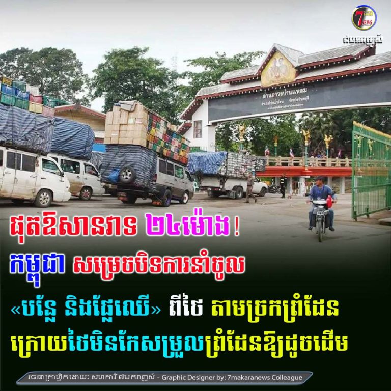 កម្ពុជា៖ នៅថ្ងៃទី ១៧ មិថុនានេះ បានសម្រេចបិទការនាំចូល «បន្លែ និង ផ្លែឈើ»ពីថៃតាមច្រកព្រំដែនទាំងអស់ ក្រោយពីឱសានវាទ ២៤ ម៉ោង(ផុតខសន្យាដាច់ខាត) របស់រាជរដ្ឋាភិបាលកម្ពុជាបានដល់ពេលកំណត់ ហើយប្រទេសថៃមិនព្រមចូលរួមកែសម្រួលតាមព្រំដែនឱ្យវិលទៅរកភាពដូចដើមវិញ បិទព្រំដែនដោយឯកតោភាគី។ ក្នុងបទសម្ភាសន៍ជាមួយបណ្តាញសារព័ត៌មាន Fresh News លោក សុខ វាសនា...