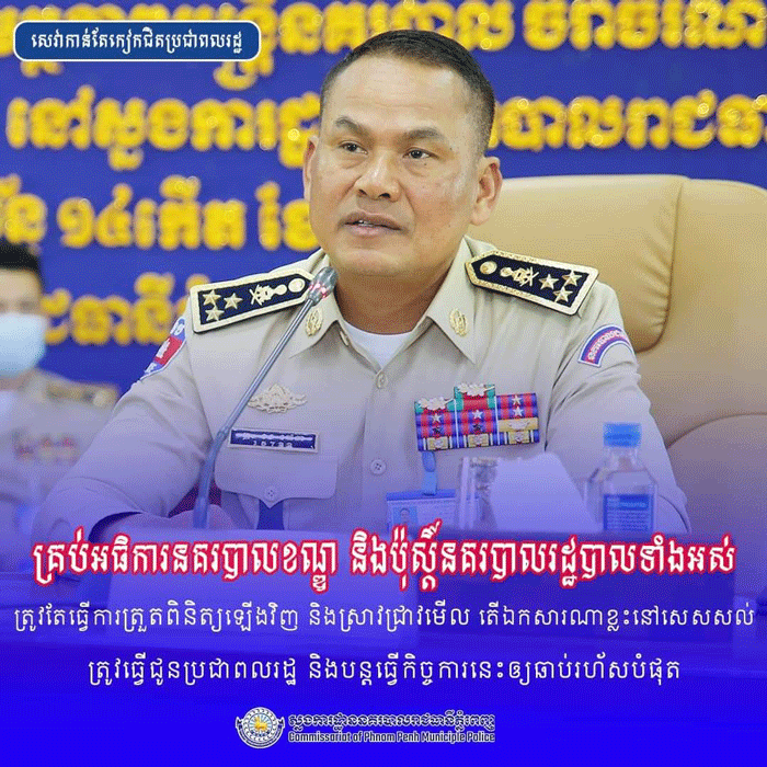 ភ្នំពេញ៖ ចេញផ្សាយ ថ្ងៃអាទិត្យ ១១រោច ខែជេស្ឋ ឆ្នាំឆ្លូវ ត្រីស័ក ព.ស ២៥៦៥, ត្រូវនឹងថ្ងៃទី ៦ ខែ មិថុនា ឆ្នាំ២០២១។ ខេត្តកណ្តាល៖ ក្រុមការងារព័ត៌មាន និងប្រតិកម្មរហ័ស នៃស្នងការដ្ឋាននគរបាលខេត្តកណ្តាល សូមបំភ្លឺឆ្លេីយតបទៅនឹងការចូលផ្ញើសាររបស់ប្រជាពលរដ្ឋ សុំមិនបញ្ចេញឈ្មោះ...