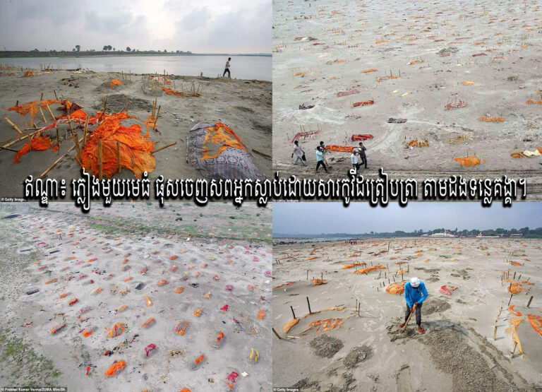 ភ្នំពេញ៖ ចេញផ្សាយ ថ្ងៃសៅរ៍ ១១កើត ខែជេស្ឋ ឆ្នាំឆ្លូវ ត្រីស័ក ព.ស ២៥៦៥, ត្រូវនឹងថ្ងៃទី ២២ ខែ ឧសភា ឆ្នាំ២០២១។ ឥណ្ឌា៖ ភ្លៀងមួយមេធំ ផុសចេញសពអ្នកស្លាប់ដោយសារកូវីដត្រៀបត្រា តាមដងទន្លេគង្គា។ វាគឺជារូបភាពដ៏រន្ធត់ ដែលសពអ្នកស្លាប់ដោយសារជំងឺកូវីដ-១៩...