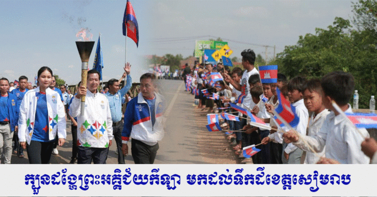 ក្បួនដង្ហែព្រះអគ្គិជ័យកីឡា មកដល់ទឹកដីខេត្តសៀមរាប សៀមរាប ថ្ងៃទី០៣ ខែឧសភា ឆ្នាំ២០២៣ ក្បួនដង្ហែព្រះអគ្គិជ័យកីឡាស៊ីហ្គេម មកដល់ទឹកដីខេត្តសៀមរាបហើយ នាព្រឹកថ្ងៃទី០៣ ខែឧសភា ឆ្នាំ២០២៣ ដោយទទួលបានការស្វាគមន៍ពីសំណាក់លោកជំទាវ ម៉ននី រង្សី អភិបាលរងខេត្តសៀមរាប និងមន្រ្តីរាជការ រួមជាមួយប្រជាពលរដ្ឋយ៉ាងច្រើនកុះករ នៅក្នុងខេត្ត។