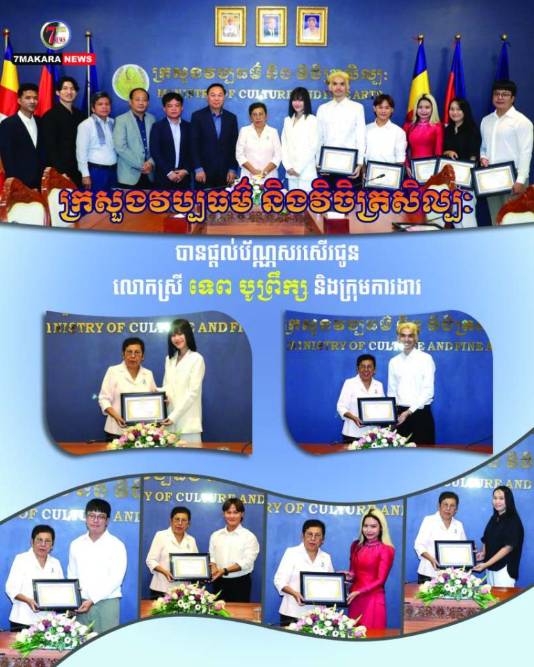 រាជធានីភ្នំពេញ៖ នាព្រឹកថ្ងៃទី០៤ ខែកញ្ញា ឆ្នាំ២០២៥ លោកជំទាវបណ្ឌិតសភាចារ្យ ភឿង សកុណា រដ្ឋមន្ត្រីក្រសួងវប្បធម៌ និងវិចិត្រសិល្បៈបានទទួលជួបលោកស្រី ទេព បូព្រឹក្ស និងក្រុមការងារ ដើម្បីសម្តែងការគួរសម និងធ្វើបទបង្ហាញនូវវីដេអូឯកសារស្តីពីការចូលរួមរបស់លោកស្រីដែលបានតំណាងអោយអ្នកចម្រៀងយុវវ័យកម្ពុជាសម្តែងក្នុងកម្មវិធីប្រគំតន្ត្រីនៃមហោស្រព «Round Festival »នៅទីក្រុងកូឡាឡាំពួរ ប្រទេសម៉ាឡេស៊ីកាលពីថ្ងៃទី២០ ដល់២២ ខែមិថុនាឆ្នាំ២០២៥នាពេលកន្លងទៅ។...
