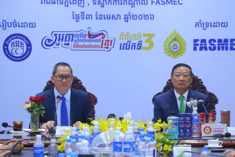 ក្លឹបអ្នកកាសែតកម្ពុជា ( CCJ )សហការជាមួយសមាគមមូលនិធិសម្ដេចតេជោ ដេីម្បីអភិវឌ្ឍន៍សហគ្រាស ធុនតូចនិងមធ្យម នៅកម្ពុជា ( FASMEC ) បានរៀបចំវេទិកាសារព័ត៌មាន ស្តីពី '' រួមគ្នាផលិត រួមគ្នាប្រេីផលិតផលជាតិ '' ( ភ្នំពេញ ) -...