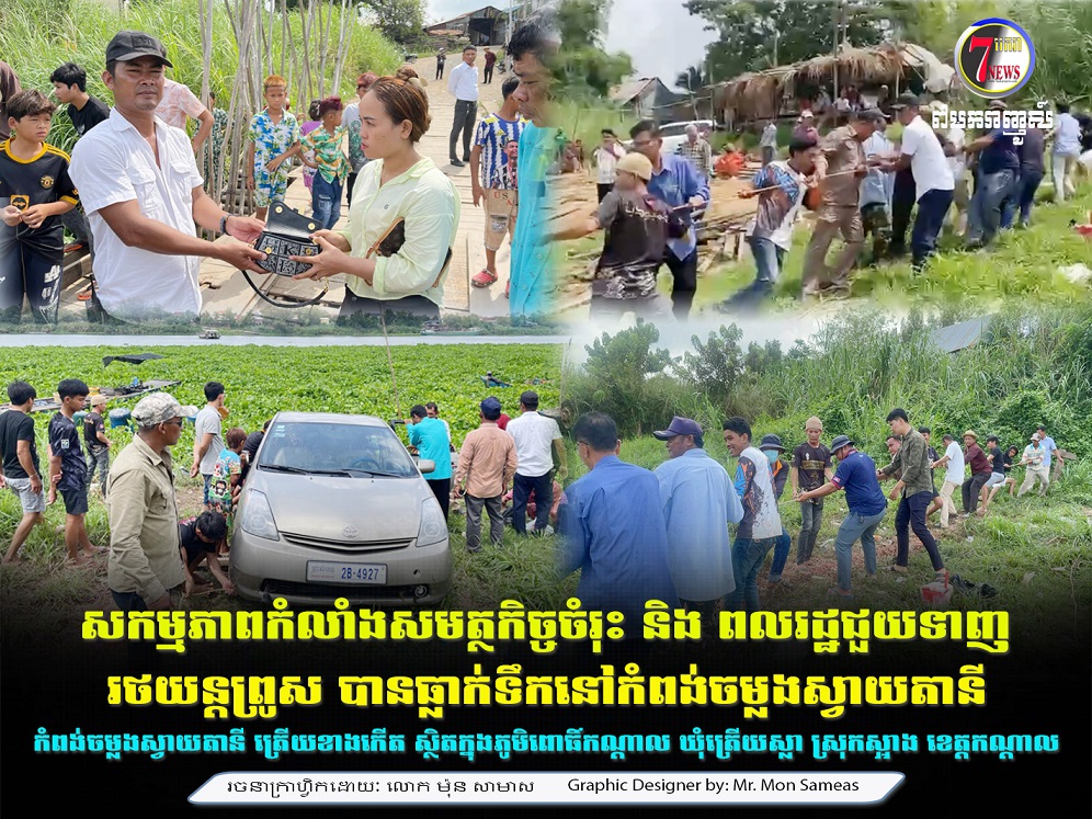 ខេត្តកណ្តាល៖ ព្រឹកថ្ងៃទី១៧ ខែមេសា ឆ្នាំ២០២៥ លោកសេង វុធ និងលោកអេង វណ្ណឌី អភិបាលរង នៃគណៈអភិបាលស្រុក តំណាងលោកអភិបាលស្រុក បានដឹកនាំកម្លាំងអាវុធហត្ថស្រុក កម្លាំងអធិការស្រុក ក្រុមប្រឹក្សាឃុំ ត្រើយស្លា កម្លាំងប៉ុស្តិ៍នគរបាលឃុំត្រើយស្លា លោកមេភូមិពោធិ៍កណ្តាល ម្ចាស់អាជីវកម្មកំពង់ចម្លងស្វាយតានី ចុះជួយសង្គ្រោះ មនុស្សក្នុងរថយន្តព្រុសដែលបានធ្លាក់ចូលក្នុងទន្លេបាសាក់ត្រង់ចំណុចកំពង់ចម្លងស្វាយតានី ត្រើយខាងកើត ស្ថិតក្នុងភូមិពោធិ៍កណ្តាល ឃុំត្រើយស្លា ស្រុកស្អាង ខេត្តកណ្តាល ឱ្យមានសុវត្ថិភាព។