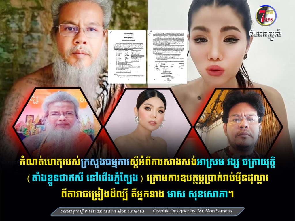 កំណត់ហេតុរបស់ក្រសួងធម្មការស្តីអំពីការសាងសង់អាស្រម វង្ស ចក្រាយុត្តិ (តាំងខ្លួនជាឥសី នៅជើងភ្នំត្បែង) ក្រោមការឧបត្ថម្ភប្រាក់រាប់ម៉ឺនដុល្លារពីតារាចម្រៀង មាស សុខសោភា។