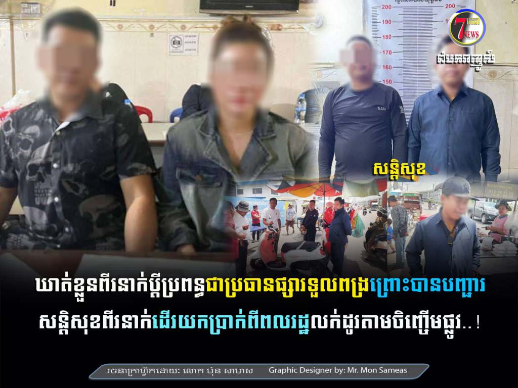 ឃាត់ខ្លួនពីរនាក់ប្តីប្រពន្ធជាប្រធានផ្សារទួលពង្រព្រោះបានបញ្ជារសន្តិសុខពីរនាក់ដើរយកប្រាក់ពីពលរដ្ឋលក់ដូរតាមចិញ្ចើមថ្នល់។
