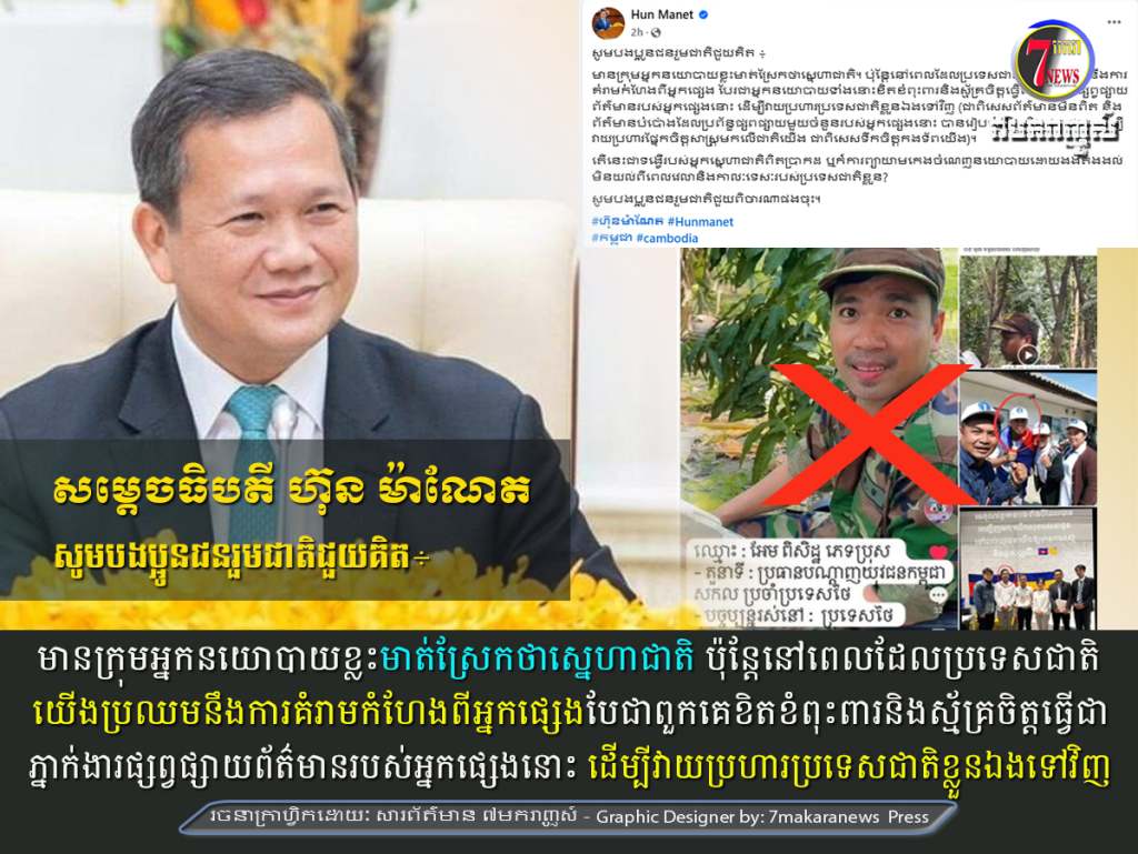 មានក្រុមអ្នកនយោបាយខ្លះមាត់ស្រែកថាស្នេហាជាតិ។ ប៉ុន្តែនៅពេលដែលប្រទេសជាតិយើងប្រឈមនឹងការគំរាមកំហែងពីអ្នកផ្សេង បែរជាអ្នកនយោបាយទាំងនោះខិតខំពុះពារនិងស្ម័គ្រចិត្តធ្វើជាភ្នាក់ងារផ្សព្វផ្សាយព័ត៌មានរបស់អ្នកផ្សេងនោះ ដើម្បីវាយប្រហារប្រទេសជាតិខ្លួនឯងទៅវិញ (ជាពិសេសព័ត៌មានមិនពិត និងព័ត៌មានបំប៉ោងដែលប្រព័ន្ធផ្សពផ្សាយមួយចំនួនរបស់អ្នកផ្សេងនោះ បានរៀបចំឡើងនិងផ្សព្វផ្សាយដើម្បីវាយប្រហារផ្នែកចិត្តសាស្ត្រមកលើជាតិយើង ជាពិសេសទឹកចិត្តកងទ័ពយើង)។