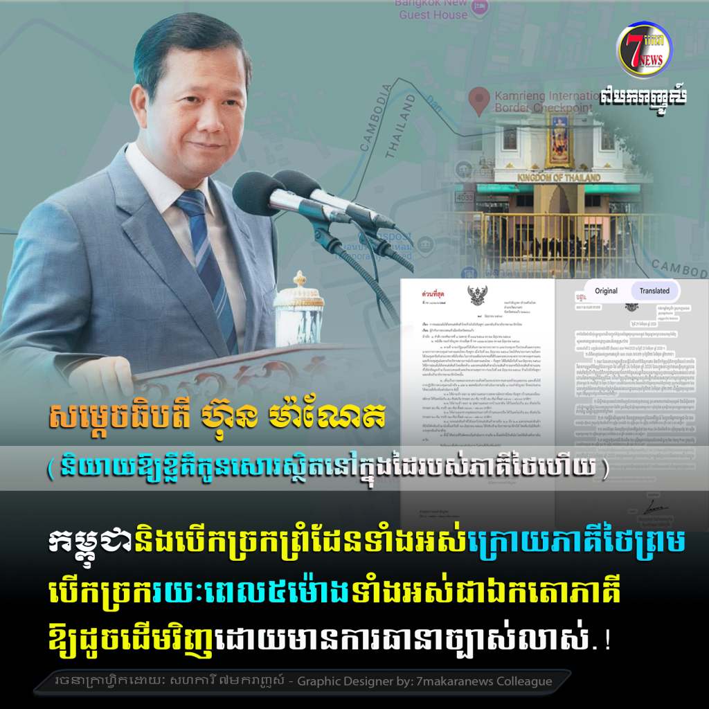 ហេតុដូច្នេះ ចំពោះអាជ្ញាធរថៃក៏ដូចជាប្រជាជនថៃ ដែលមានបំណងចង់អោយមានការបើកច្រកព្រំដែនកម្ពុជា-ថៃ ឡើងវិញនោះ មិនចាំបាច់ស្នើមកកម្ពុជានោះទេ។ សូមស្នើទៅអ្នកដែលមានអំណាចពិតប្រាកដនៅប្រទេសថៃ (មិនថាជាកងទ័ពឬអ្នកណានោះទេ) ឱ្យបើកច្រកព្រំដែនឲ្យមានស្ថានភាពប្រក្រតីឡើងវិញដូចមុនថ្ងៃទី ៧ មិថុនា ឆ្នាំ២០២៥ និងផ្ដល់ការធានាច្បាស់លាស់ថា នឹងមិនមានការបិទ-បើកជាឯកតាគីទៀតនោះ គឺជាការស្រេច។ អ្វីៗនឹងត្រឡប់ទៅដំណើរការជាប្រក្រតីដូចមុនវិញហើយ។