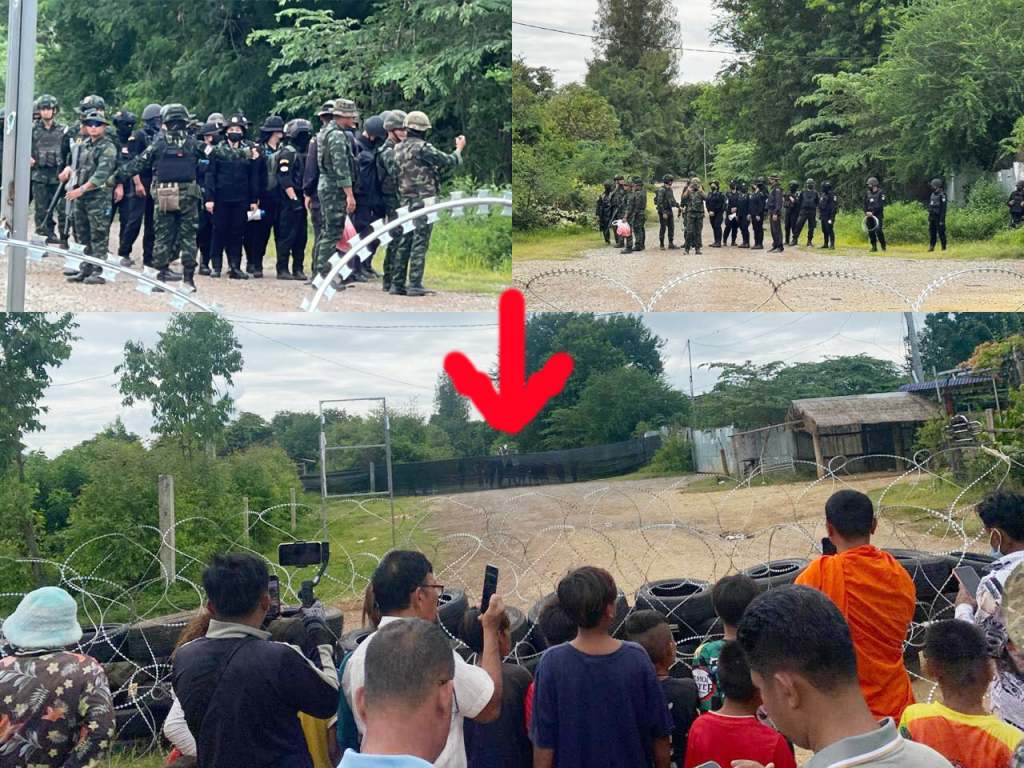 កងទ័ពថៃធ្វើសកម្មភាពរ៉ាវមីន និងបានយកសំណាញ់ខ្មៅមកបិទបាំងបន្ថែមពីមុខបន្លាលួសដែលពួកគេព័ទ្ធយកផ្ទះអ្នកស្រុក