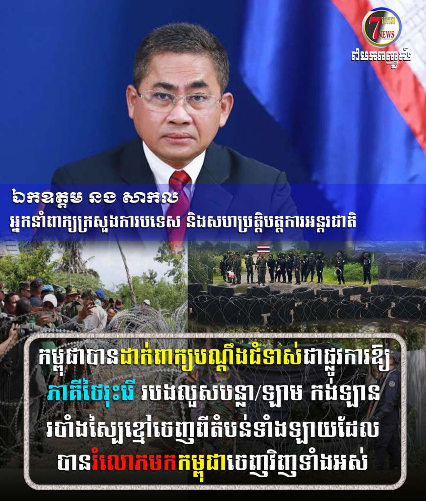 កម្ពុជាបានដាក់ពាក្យបណ្តឹងជំទាស់ជាផ្លូវការឱ្យភាគីថៃរុះរើរបងលួសបន្លា/ឡាម របាំងសំណាញ់ស្បៃខ្មៅ និង ដាក់កង់ឡានចេញពីតំបន់ទាំងឡាយដែលបានរំលោភមកកម្ពុជា!