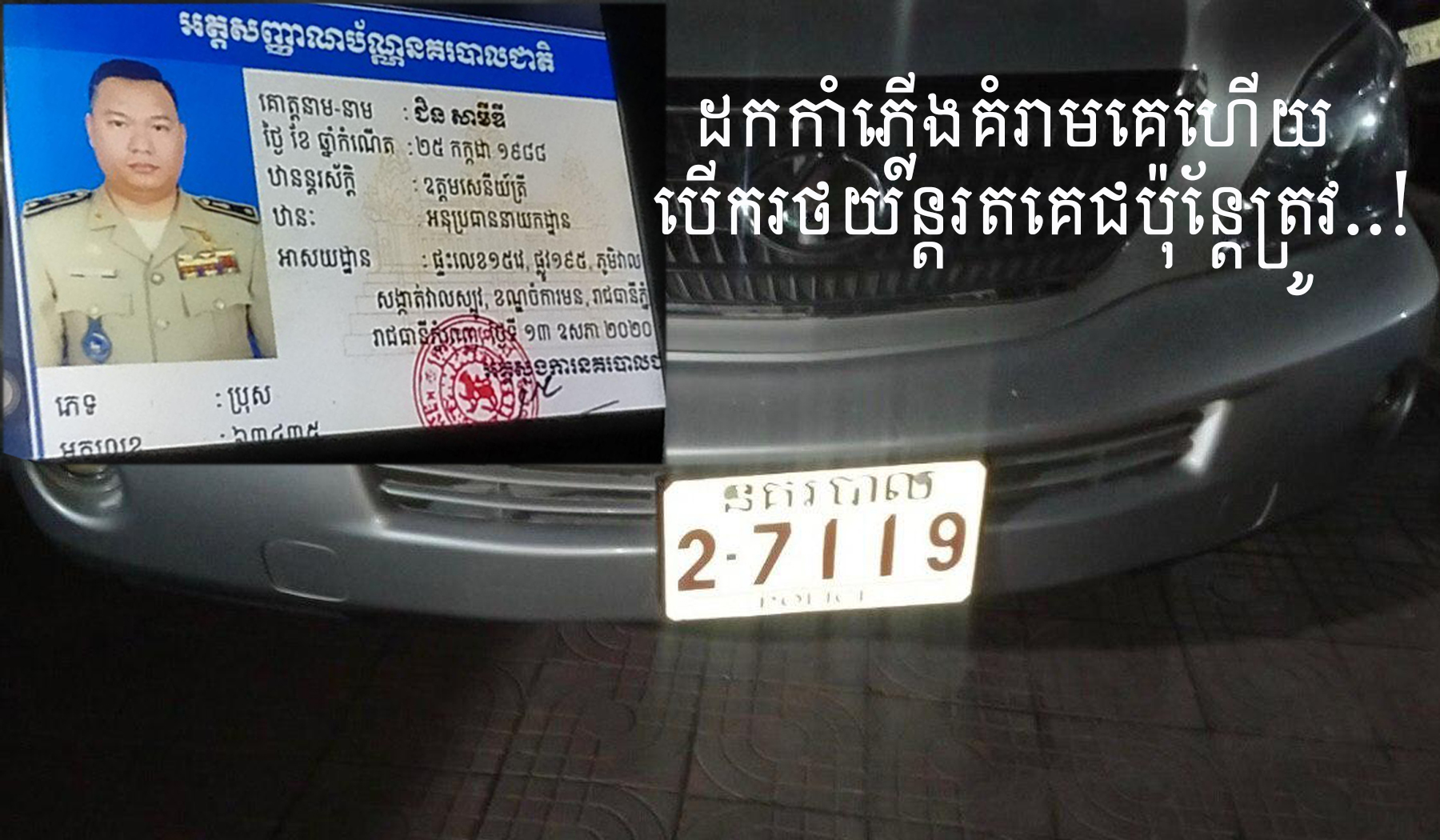 រាជធានីភ្នំពេញវេលាម៉ោង 1 និង 30 នាទីរំលងអាទ្រាតឈានចូលថ្ងៃទី 12 ខែសីហាឆ្នាំ 2020។ករណីអ្នកមានអំណាចដកកាំភ្លើងគំរាមកំហែងដល់អ្នកដ៏ទៃ។