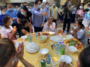 ឯកឧត្ដម ឃួងស្រេង និងលោកជំទាវផ្ដល់កិត្ដិយសទទួលទាននំបញ្ចុកសន្តិភាពជាមួយក្រុមជនរងគ្រោះនិងងាយរងគ្រោះចំនួន៤០០នាក់នៅមណ្ឌលសង្គមកិច្ចព្រៃស្ពឺ