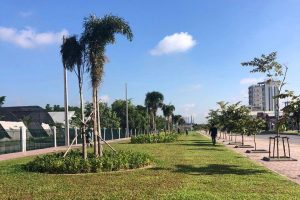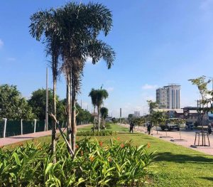សួនច្បារថ្មី នៅមហាវិថីកម្ពុជា ហាណូយ និងរៀបចំឡើងដោយ រដ្ឋបាលរាជធានីភ្នំពេញ ដើម្បីការពារដីសាធារណៈ និងជាកន្លែងសម្រាប់ហាត់ប្រាណ របស់ប្រជាពលរដ្ឋផង