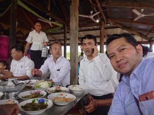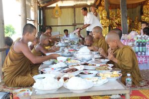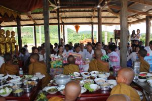វត្តមុន្នីសុខារាម (ហៅវត្តភ្នំទុំពូង) នៅភូមិកំពង់ចិន ឃុំស្ទឹងកែវ ស្រុកទឹកឈូ កំពត។ ឮថាមានការខ្វះខាតយ៉ាងខ្លាំង ហើយមិនសូវមានពុទ្ធបរិស័ទ្ធចូលកាន់វេនបិណ្ឌប៉ុន្មានទេ ដូច្នេះ ក្រុមការយើងខ្ញុំបានដឹកនាំយក គ្រឿងបរិភោគខ្លះ ទៅប្រគេនព្រះសង្ឃដែលគង់ចាំព្រះវស្សាអស់កាលជាយូមកហើយ។![]()
