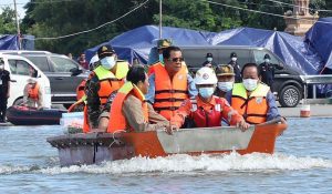 សម្ដេចតេជោ ហ៊ុន សែន អញ្ជើញធ្វើដំណើរតាមទូកចុះពិនិត្យមើលស្ថានភាពការលិចលង់ផ្ទះរបស់ប្រជាពលរដ្ឋ និងផ្ដល់អំណោយសង្គ្រោះតាមខ្នងផ្ទះ