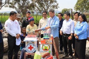 ឯកឧត្តម គួច ចំរើន ប្រធានគណៈកម្មាធិការសាខាកាកបាទក្រហម នាំយកអំណោយមនុស្សធម៌ ចែកជូនគ្រួសាររងគ្រោះ ដោយអគ្គិភ័យនៅស្រុកព្រៃនប់