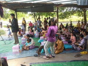 ក្នុងនោះប្រជាពលរដ្ឋក្នុង២កគ្រួសារ ទទួលបាននូវ អង្ករ១បេតូច, មីខ្លាឃ្មុំ១កេស, ទឹកត្រី/ទឹកស៊ីអីវ១យួ, ត្រីខ១យួ, ទឹកសុទ្ធ២យួ, និងថវិការចំនួន២០០០០រ(ពីរម៉ឺនរៀល)