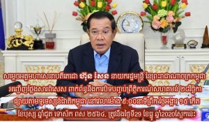 អគ្គនាយកដ្ឋានទូរទស្សន៍ជាតិកម្ពុជា នឹងផ្សាយផ្ទាល់ពិសេស សម្តេចអគ្គមហាសេនាបតីតេជោ ហ៊ុន សែន នាយករដ្ឋមន្ត្រី នៃព្រះរាជាណាចក្រកម្ពុជា អញ្ជើញថ្លែងសារពិសេស ពាក់ព័ន្ធនឹងការបិទបញ្ចប់ព្រឹត្តិការណ៍សហគមន៍ ២៨វិច្ឆិកា និងចំនុចសំខាន់ៗផ្សេងទៀត