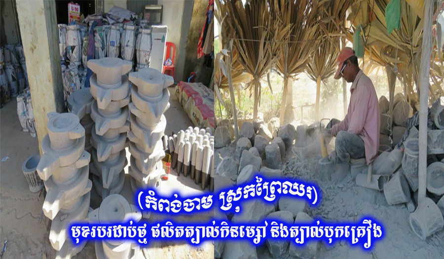 កំពង់ចាម៖ពលរដ្ឋក្នុងស្រុកព្រៃឈរ នៅតែបន្តប្រកបមុខរបរដាប់ថ្ម ផលិតត្បាល់កិនម្សៅ និងត្បាល់បុកគ្រឿង ដើម្បីរកប្រាក់កម្រៃផ្គត់ផ្គង់ជីវភាពគ្រួសារ