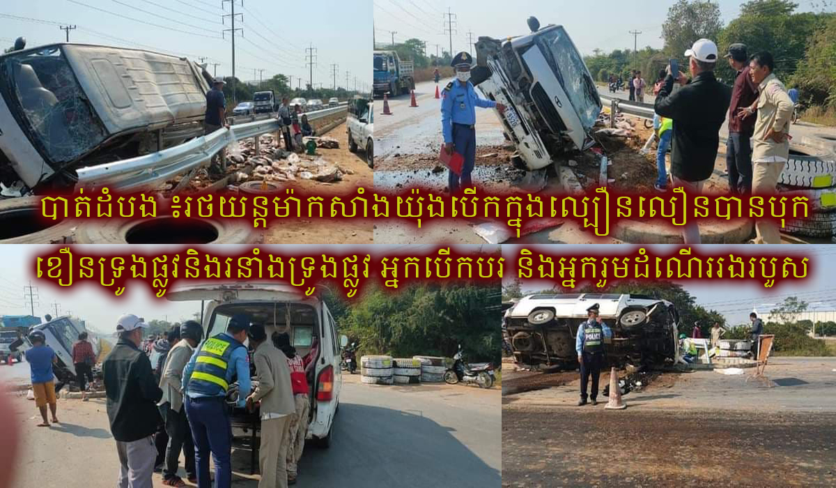បាត់ដំបង ៖ នៅលើកំណាត់ផ្លូវជាតិលេខ ៥ រថយន្តធន់ធំ១ គ្រឿងបើកបរដោយភាពប្រមាថនិងការបង្កឲ្យមានគ្រោះថ្នាក់និងការខូចខាតទ្រព្យសម្បត្តិសាធារណៈ១ចំនួនលើផ្លូវជាតិដែលកំពងស្ថាបនាមួយកន្លែង ។ យោងតាមរបាយការណ៍ពីកម្លាំងសមត្ថកិច្ចកន្លែងកើតហេតុបានឲ្យដឹងថា ស្រុកថ្មគោលនៅថ្ងៃអាទិត្យ ៤កើត ខែបុស្ស ឆ្នាំជូត ទោស័ក ព.ស២៥៦៤ ត្រូវនឹងថ្ងៃទី១៧ខែមករា ឆ្នាំ២០២១ វេលាម៉ោង៩:៤០នាទី លើផ្លូវជាតិលេខ៥ កំពុងស្ថាបនា ត្រង់ចំណុចក្រុមទី០១ ភូមិត្រស់ ឃុំអូរតាគី ស្រុកថ្មគោល ខេត្តបាត់ដំបង មានករណីគ្រោះថ្នាក់ចរាចរណ៍កើតឡើង រវាងរថយន្ត(បង្កដោយខ្លួនឯង) ។ មានរថយន្តម៉ាកសាំងយ៉ុង (SANGYUNG ) ពណ៍ស ស៊េរី១៩៩៦ ពាក់ផ្លាកលេខភ្នំពេញ (2Y-9520) បើកពីទិសខាងជើងទៅត្បូងក្នុងល្បឿនលឿន ដល់ចំណុចកើតហេតុ បានបុកខឿនទ្រូងផ្លូវនិងរនាំងទ្រូងផ្លូវ បណ្តាលឱ្យអ្នកបើកបររថយន្ត និងអ្នករួមដំណើររងរបួសធ្ងន់ស្រាលចំនួន ០២នាក់ ស្រី០១នាក់ ។ ១-អ្នកបើករថយន្តឈ្មោះ ដួង សុភ័ណ ភេទប្រុស អាយុ២៧ឆ្នាំ រស់នៅភូមិអូរ ឃុំពេជ្រចិន្តា ស្រុកភ្នំព្រឹក ខេត្តបាត់ដំបង (របួសធ្ងន់). +អ្នករួមដំណើរឈ្មោះ ញ៉ែម ផាត ភេទស្រី អាយុ៤៤ ឆ្នាំ រស់នៅភូមិអូរ ឃុំពេជ្រចិន្តា ស្រុកភ្នំព្រឹក ខេត្តបាត់ដំបង (របួសស្រាល) ។ ករណីនេះ ជំនាញស្រុកបានយករថយន្តសង្គ្រោះដឹកជនរងគ្រោះទាំងពីរនាក់ បញ្ជូនទៅមន្ទីរពេទ្យខេត្តបាត់ដំបង បន្ទាប់មកបានវាស់វែង និងដកហូតសម្ភារតាងបង្ក យកមករក្សាទុកនៅអធិការដ្ឋាននគរបាលស្រុកថ្មគោល តាមការស្នើសុំរបស់ក្រុមហ៊ុនផ្លូវ ដើម្បីរងចាំធ្វើការដោះស្រាយ ៕