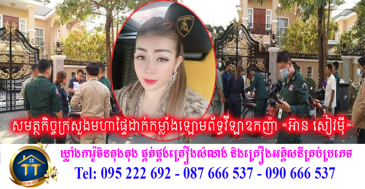 ភ្នំពេញ ៖ ប្រជាពលរដ្ឋជាអ្នករស់នៅក្បែរផ្ទះវីឡារបស់លោកស្រី ឧកញ៉ា (អ៊ាន សៀវមុី) មានការភ្ញាក់ផ្អើលបន្ទាប់ពីបានឃើញកម្លាំងនគរបាលព្រហ្មទណ្ឌក្រសួងមហាផ្ទៃ ដឹកនាំដោយមន្ត្រីសាលាដំបូងរាជធានីភ្នំពេញ បានចុះធ្វើការឡោមព័ទ្ធវីឡារបស់លោកស្រីឧកញ៉ា (អ៊ាន សៀវម៉ី) ជាអ្នកលក់ឡេតាមអនឡាញដ៏ល្បីឈ្មោះ ។
