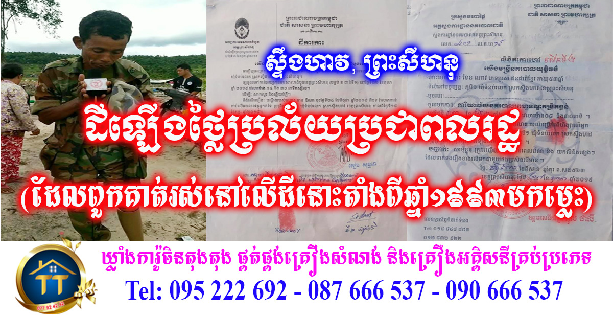 ព្រះសីហនុ៖ ដីឡើងថ្លៃប្រល័យប្រជាពលរដ្ឋ (ដែលពួកគាត់រស់នៅលើដីនោះតាំងពីឆ្នាំ១៩៩៣មកម្លេះ)