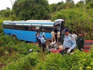 រថយន្តដឹកអ្នកដំណើរក្រុមហ៊ុនអូរខុងបើកធ្លាក់ចូលអូរស្លាប់ក្មេង២នាក់និងរងរបួសជាង២០នាក់