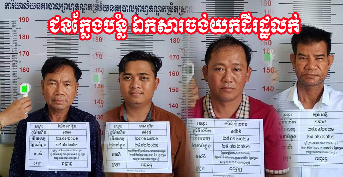 ចាប់ខ្លួន៤នាក់ ចង់លេបដីរដ្ឋ លក់យកលុយ១លានដុល្លារកន្លះដោយយកឈ្មោះប្រជាជនជាខែល ហើយហ៊ានក្លែង ហត្ថលេខា និងត្រា របស់សម្តេចនាយករដ្ឋមន្ត្រីទៀត!