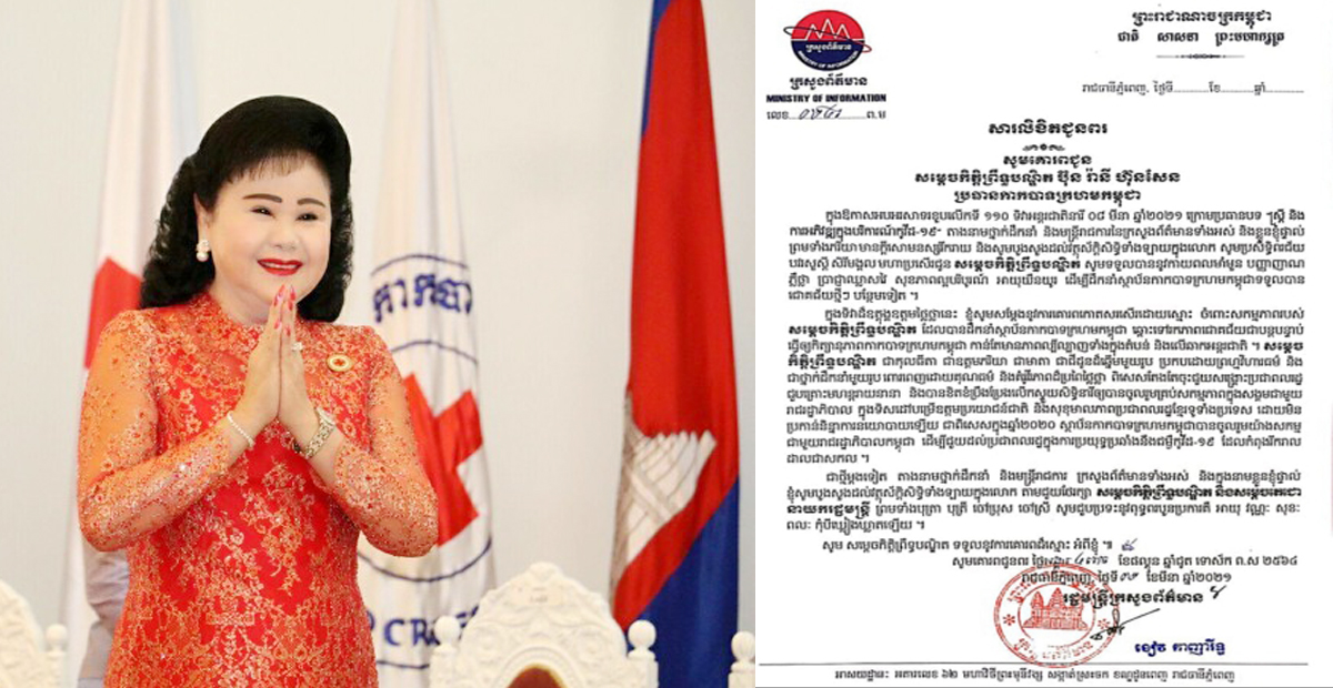 ឯកឧត្តម ខៀវ កាញារីទ្ធ ផ្ញើសារគោរពជូនពរ សម្តេចកិត្តិព្រឹទ្ធបណ្ឌិត ប៊ុន រ៉ានី ហ៊ុន សែន ក្នុងឱកាសខួបលើកទី១១០ ទិវាអន្តរជាតិនារី ០៨ មីនា ២០២១