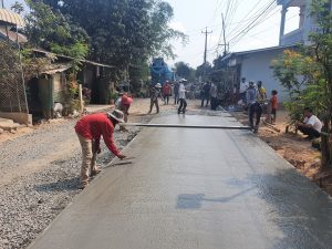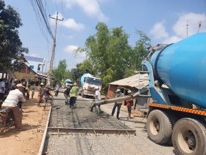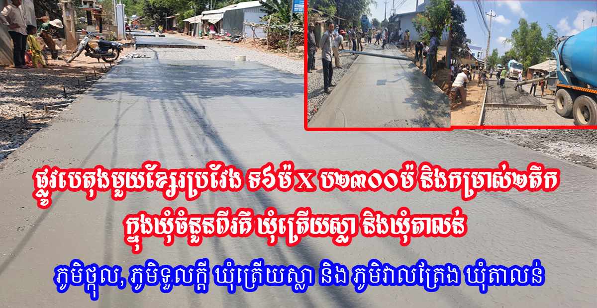 ការដ្ឋានធ្វើផ្លូវបេតុងមួយខ្សែរប្រវែង ទ៦ម៉ X ប២៣០០ម៉ និងកម្រាស់២តឹក ក្នុងឃុំចំនួនពីរគឺ ឃុំត្រើយស្លា និងឃុំតាលន់ ស្រុកស្អាង ខេត្តកណ្តាល