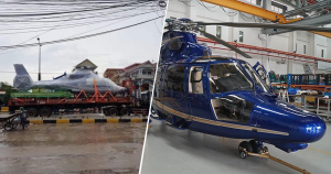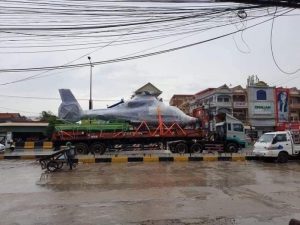 ឧត្ថម្ភាគចក្រដែលដឹកតាមឡានសន្តោងផ្អើលពេញភ្នំពេញនោះ ជាប្រភេទ Eurocopter AS365N3 Dauphin ម៉ាស៊ីនភ្លោះ ដែលផលិតដោយក្រុមហ៊ុនបារាំង Airbus Helicopters។ ឧត្ថម្ភាគចក្រ ប្រភេទនេះមានពីលុត ១ ឬ ២ នាក់ និងអាចដឹកអ្នកដំណើរសរុបបាន ១២ នាក់។ ល្បឿនអតិបរមានរបស់វាដល់ទៅ ៣០៦ គ.ម/ម៉ និងអាចហោះបានរយៈចម្ងាយ ៨២៧ គ.ម។ តម្លៃរបស់វានៅបរទេសប្រហាក់ប្រហែល ១១ លានដុល្លារ។