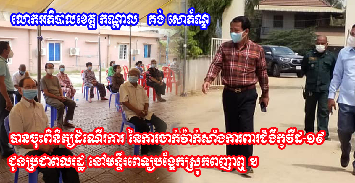 លោកអភិបាលខេត្ត គង់ សោភ័ណ្ឌ បានចុះពិនិត្យដំណើរការ នៃការចាក់វ៉ាក់សាំងការពារជំងឺកូវីដ-១៩ ជូនប្រជាពលរដ្ឋ នៅមន្ទីរពេទ្យបង្អែកស្រុកពញាឮ ។