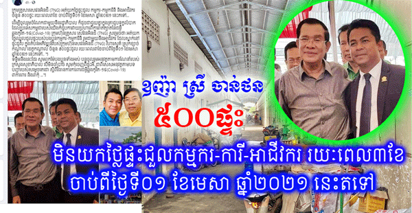 ឧកញ៉ា ស្រី ចាន់ថន៖ អត់យកថ្លៃផ្ទះជួល កម្មករ-កម្មការិនី និងអាជីវករចំនួន ៥០០ផ្ទះ រយៈពេល៣ខែ ចាប់ពីថ្ងៃទី០១ ខែមេសា ឆ្នាំ២០២១ នេះតទៅ…!