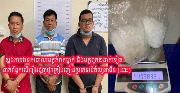 ស្នងការរងនគរបាលខេត្តកំពតម្នាក់ និងបក្ខពួក២នាក់ទៀត ត្រូវសមត្ថកិច្ចខណ្ឌដូនពេញចាប់ខ្លួនពាក់ព័ន្ធករណីរឿងជួញដូរគ្រឿងញៀនប្រភេទម៉េតំហ្វេតាមីន (ICE)