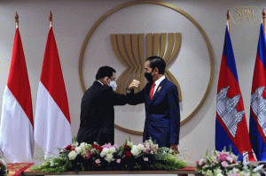 នៅរសៀលថ្ងៃទី២៤ ខែមេសា ឆ្នាំ២០២១ដដែលនេះ បន្ទាប់ពីបញ្ចប់កិច្ចប្រជុំពិសេសក្រៅផ្លូវការមេដឹកនាំអាស៊ានរួចមក សម្តេចអគ្គមហាសេនាបតីតេជោ ហ៊ុន សែន នាយករដ្ឋមន្រ្តី នៃព្រះរាជាណាចក្រកម្ពុជា បានអញ្ជើញជួបពិភាក្សាទ្វេភាគីជាមួយ ឯកឧត្តម យូកូ វីដូដូ ប្រធានាធិបតី នៃសាធារណរដ្ឋឥណ្ឌូនេស៊ី ដើម្បីផ្លាស់ប្តូរ ទស្សន:គ្នាសំដៅលើកកម្ពស់ទំនាក់ទំនង និងកិច្ចសហប្រតិបត្តិការទ្វេភាគី រវាងប្រទេសទាំងពីរកម្ពុជា ឥណ្ឌូនេស៊ី ទាំងក្របខណ្ឌទ្វេភាគី ពហុភាគី តំបន់ និងអន្តរជាតិ ដែលមានការយកចិត្តទុកដាក់ដូចគ្នា។