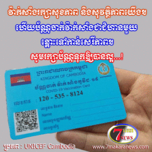 វ៉ាក់សាំងរក្សាសុខភាព និងសុវត្ថិភាពយើង ហើយប័ណ្ណចាក់វ៉ាក់សាំងជាជំហានមួយឆ្ពោះទៅកាន់សេរីភាព។ សូមរក្សាប័ណ្ណ និងសុខភាពរបស់អ្នកឲ្យបានល្អ!