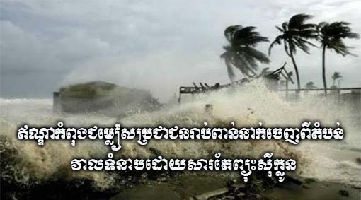 ឥណ្ឌា៖ ឥណ្ឌាកំពុងជម្លៀសប្រជាជនរាប់ពាន់នាក់ចេញពីតំបន់វាលទំនាប តាមបណ្តោយឆ្នេរភាគខាងលិចប្រទេសដោយសារតែព្យុះស៊ីក្លូន ដែលបានសម្លាប់មនុស្សយ៉ាងតិច ៦ នាក់ត្រូវបានគេប៉ាន់ស្មានថា នឹងបង្កឱ្យមានការបាក់ដីនៅព្រឹកថ្ងៃអង្គារខាងមុខនេះក្នុងរដ្ឋ Gujarat។