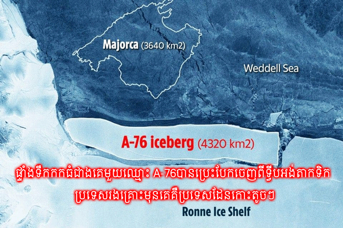 ផ្ទាំងទឹកកកធំជាងគេមួយឈ្មោះ A-76 បានប្រេះបែកចេញពីទ្វីបអង់តាកទិកកាលពីប៉ុន្មានថ្ងៃនេះ។