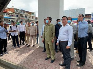 អភិបាលរាជធានីភ្នំពេញ ឯកឧត្ដម ឃួង ស្រេង បានចុះពិនិត្យស្ថានភាពស្ពានអាកាសថ្មើរជើងផ្សារដើមគរ នៃខណ្ឌទួលគោក