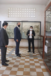 នាថ្ងៃពុធ ទី២៣ ខែមិថុនា ឆ្នាំ២០២១ ឯកឧត្ដម Dominic Raab MP រដ្ឋមន្ត្រីការបរទេស និងអភិវឌ្ឍន៍នៃចក្រភពអង់គ្លេស អមដំណើរដោយលោកជំទាវ Tina S Redshaw ឯកអគ្គរាជទូតអង់គ្លេសប្រចាំកម្ពុជា អញ្ជើញទស្សនាសារមន្ទីរឧក្រិដ្ឋកម្មប្រល័យពូជសាសន៍ទួលស្លែង ដោយមានការទទួលស្វាគមន៍ពីសំណាក់លោក ឆាយ វិសុទ្ធ ប្រធាននាយកដ្ឋានសារមន្ទីរនិងជាតំណាងក្រសួងវប្បធម៌និងវិចិត្រសិល្បៈ និងលោក ហង្ស និស្ស័យ ប្រធានសារមន្ទីរឧក្រិដ្ឋកម្មប្រល័យពូជសាសន៍ទួលស្លែង។